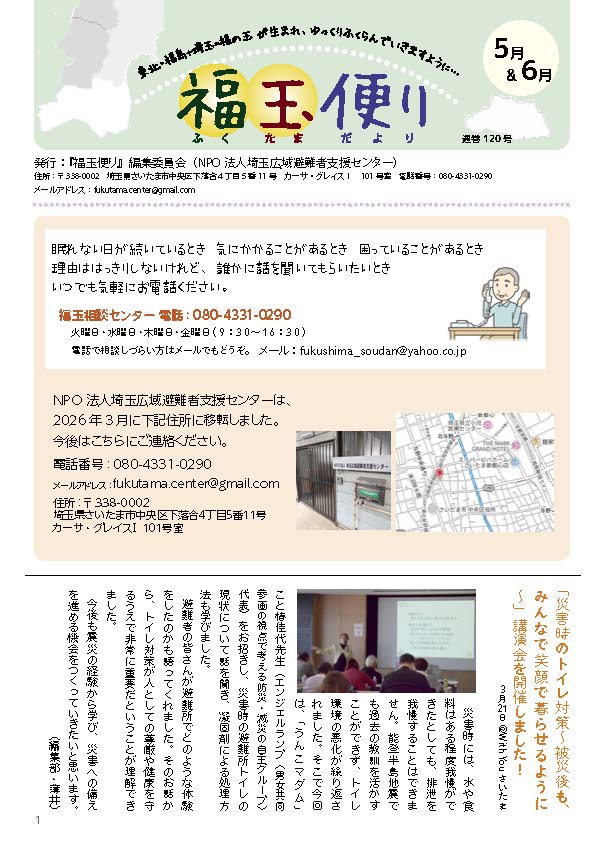 埼玉県内に避難している人々が、避難元地域の状況や帰還・移住の選択を問わず、生活を再建し安心して暮らせる社会を目指しています。